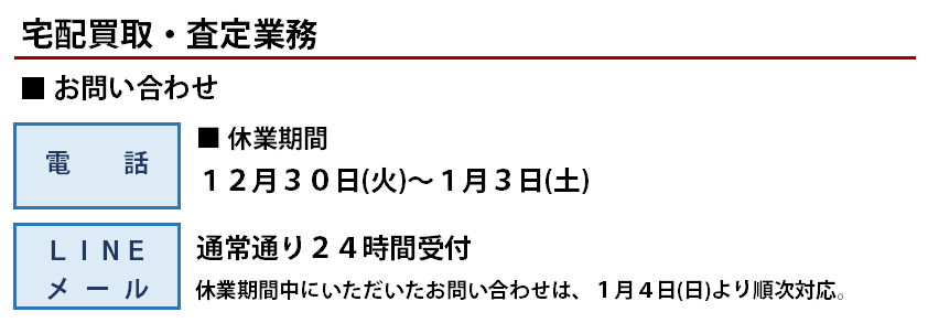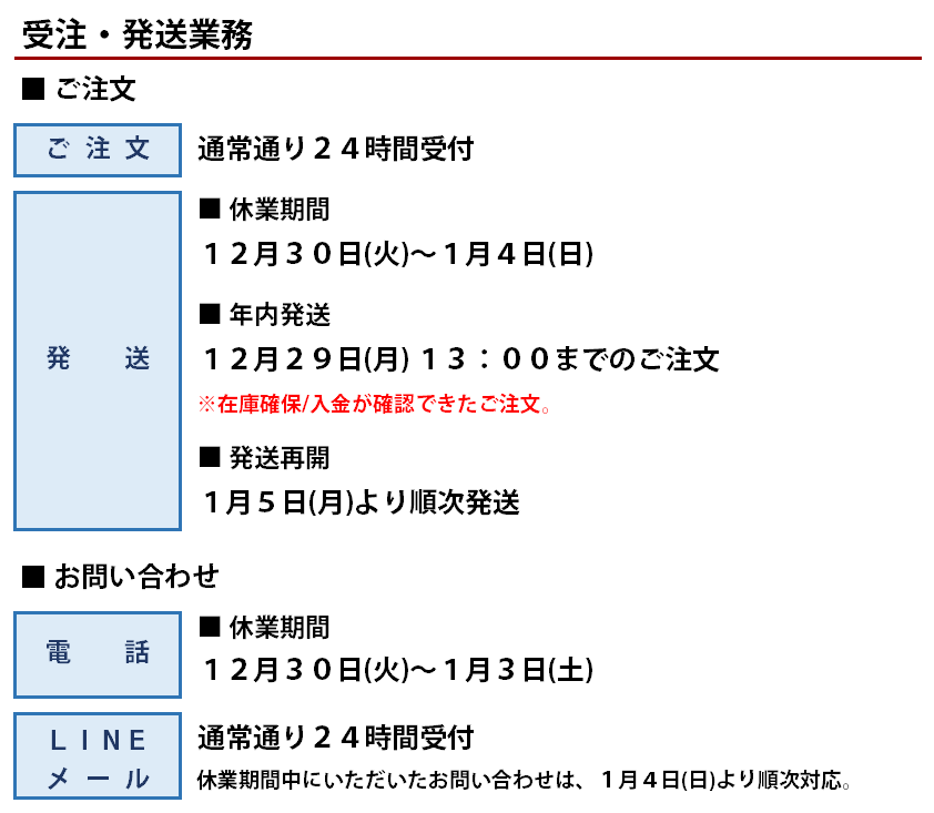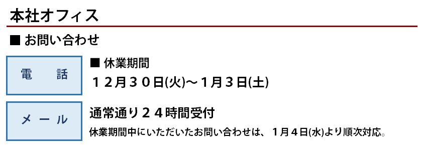 年末年始休業のお知らせ